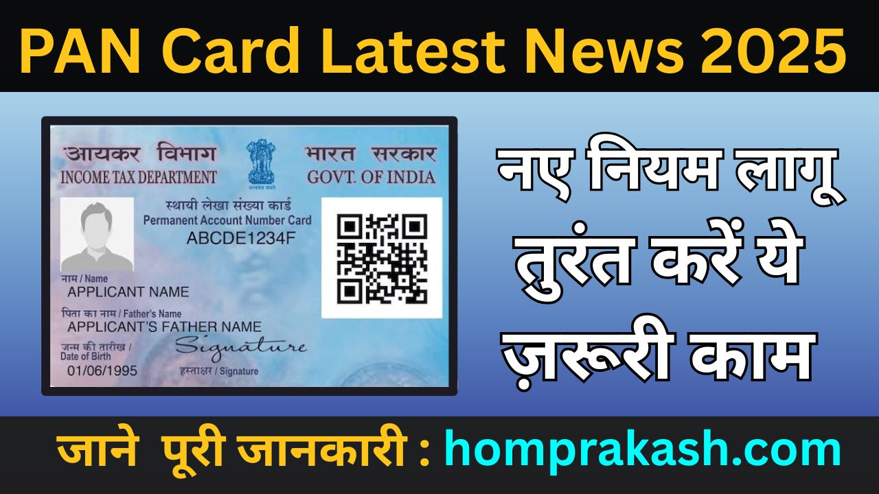 PAN Card Latest News 2025 :- भारत सरकार ने 2025 में PAN कार्ड धारकों के लिए नए नियम लागू कर दिए हैं। अगर आपने अब तक PAN को आधार से लिंक नहीं किया है, या मोबाइल नंबर और पता अपडेट नहीं किया है, तो यह लेख आपके लिए बेहद महत्वपूर्ण है। आयकर विभाग ने स्पष्ट कर दिया है कि समय पर अपडेट नहीं करने पर आपका PAN निष्क्रिय किया जा सकता है।तुरंत करें ये ज़रूरी काम